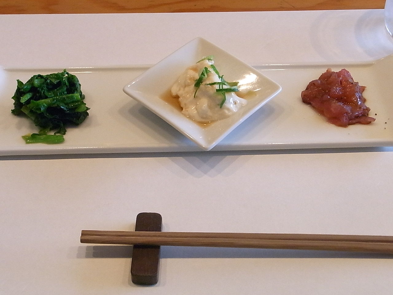 菜の花と豆腐とマグロのカルパッチョ
