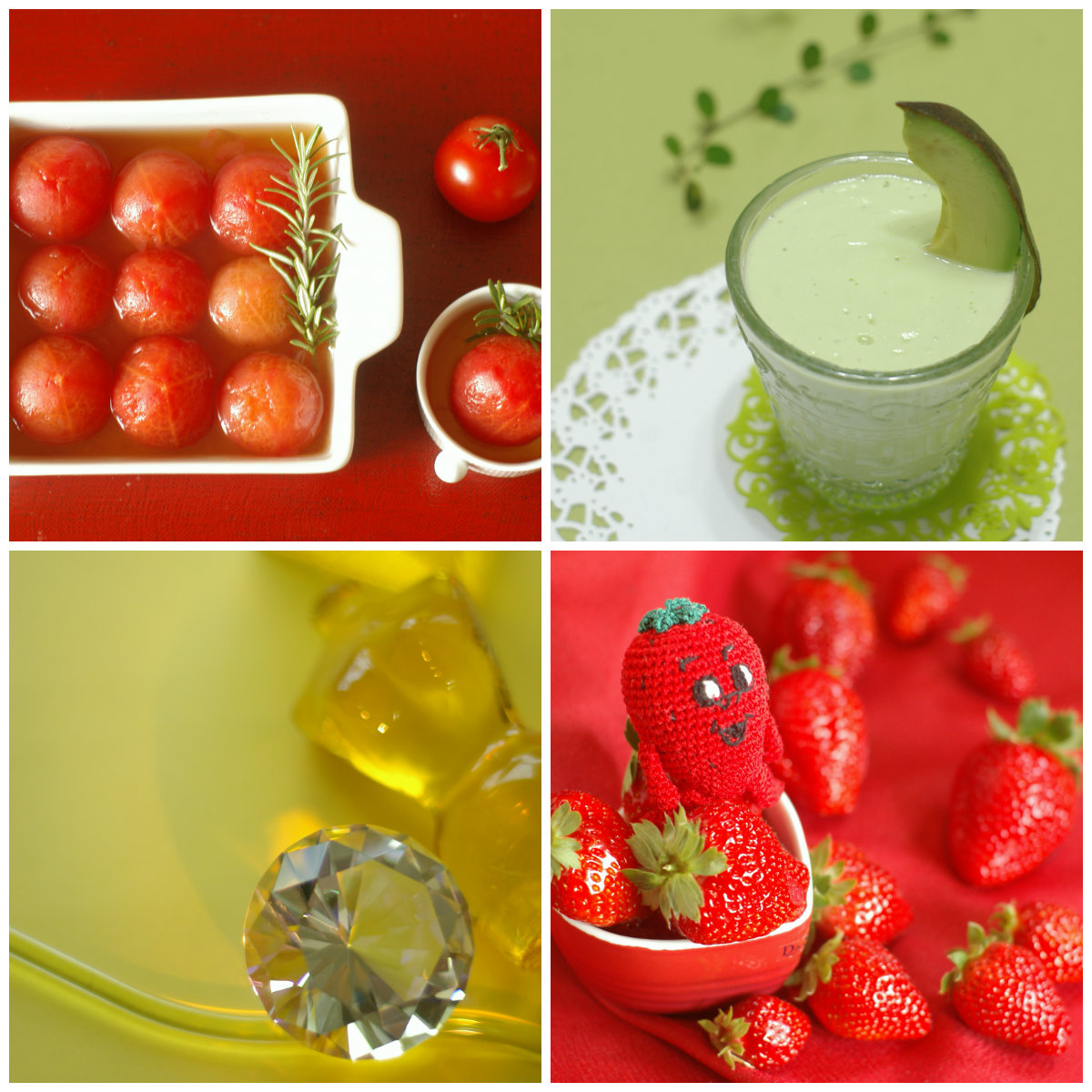 この前のトマトのコンポートも苺の写真もアボカドジュースもそのテーマで撮りました。