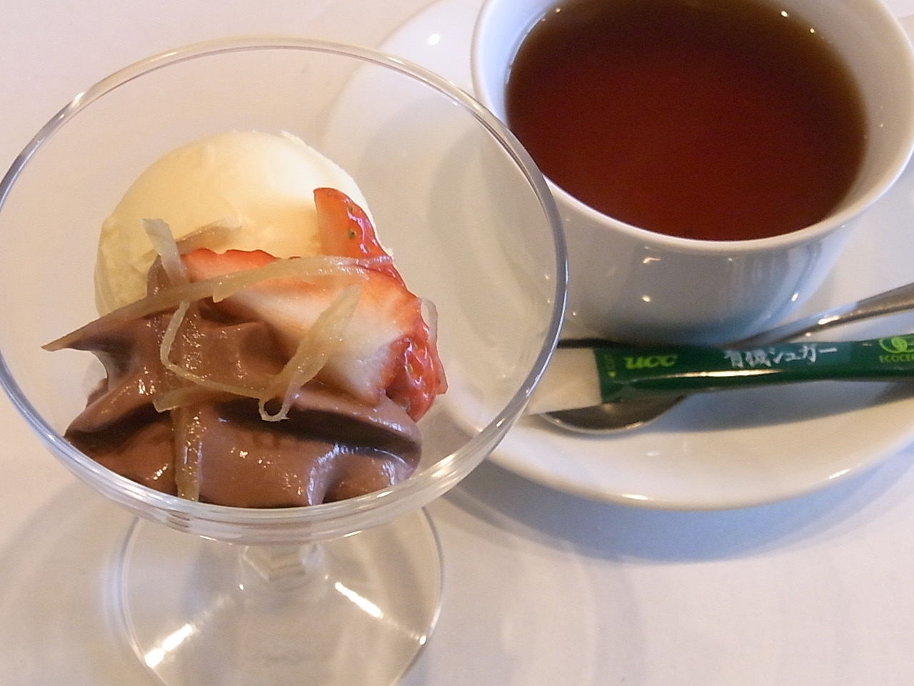 デザートのアイスはチョコレートの上に千切りのしょうががのっていて、これが合う!!