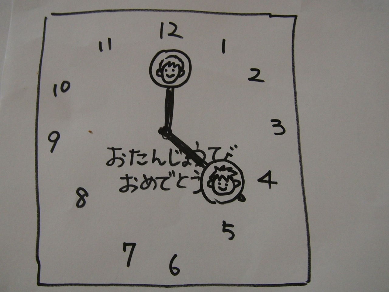 時計の針に、Y君とnickyの顔写真を貼って、時計の文字盤にメッセージを書きました。