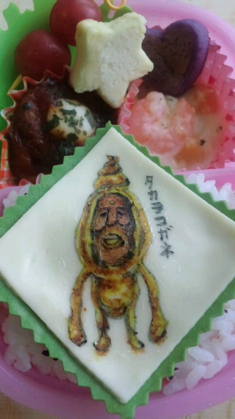 学童保育で、カクレモモジリのキャラ弁も好評だった様子で、「今度はタカラコガネがいいって♪」とみんなのリクエストを聞いてきた。