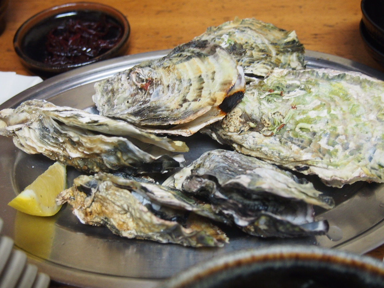 鉄板で焼いた牡蠣、香ばしい♪
